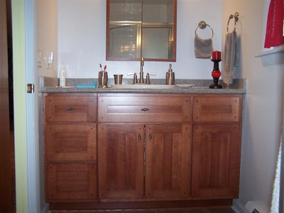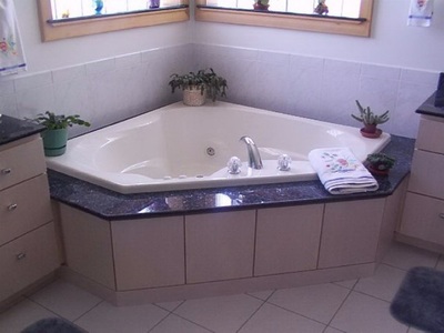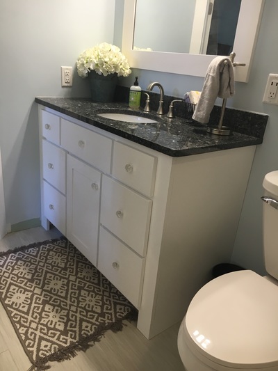 Angel White Maple ​Cabinets with Blue Pearl Granite Countertop