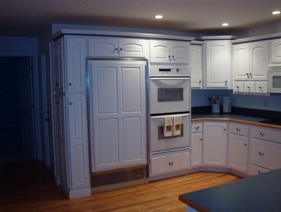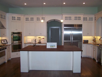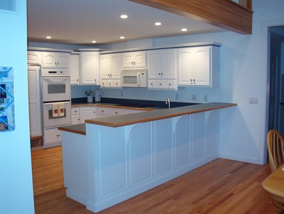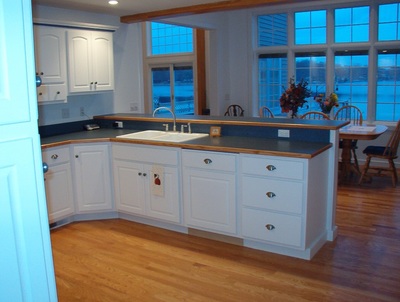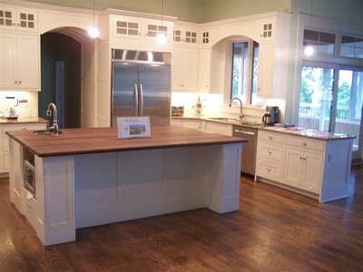 White Cabinets with Custom Wood Edge Laminate Countertop