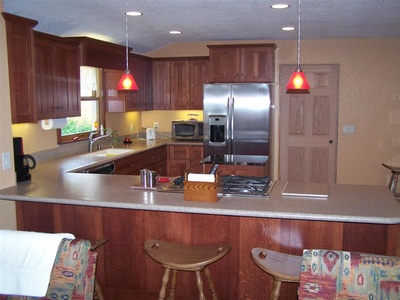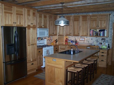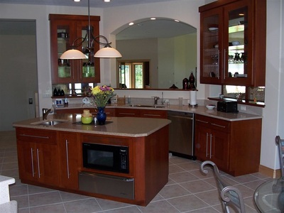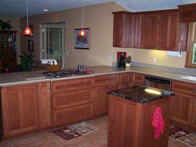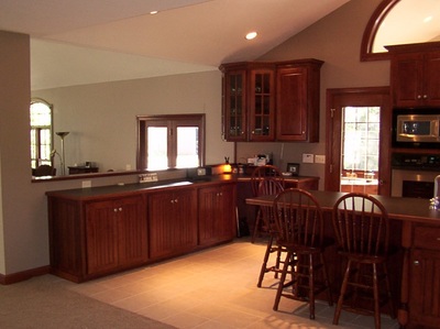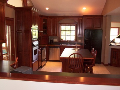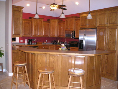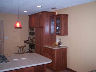 Stained Cabinets with Custom Wood Edge Laminate Countertop
