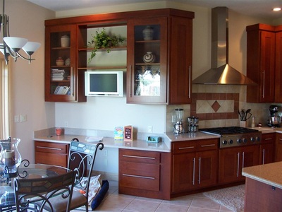 Stained Cabinets with Solid Surface Countertop